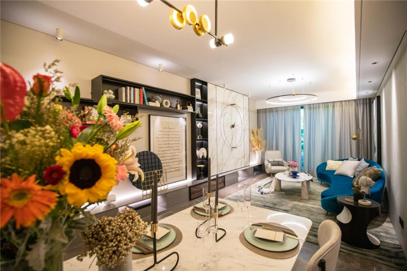 143㎡样板间明显要比126㎡的更宽敞,客厅的开间有4米,南北双向各有两个卧室。